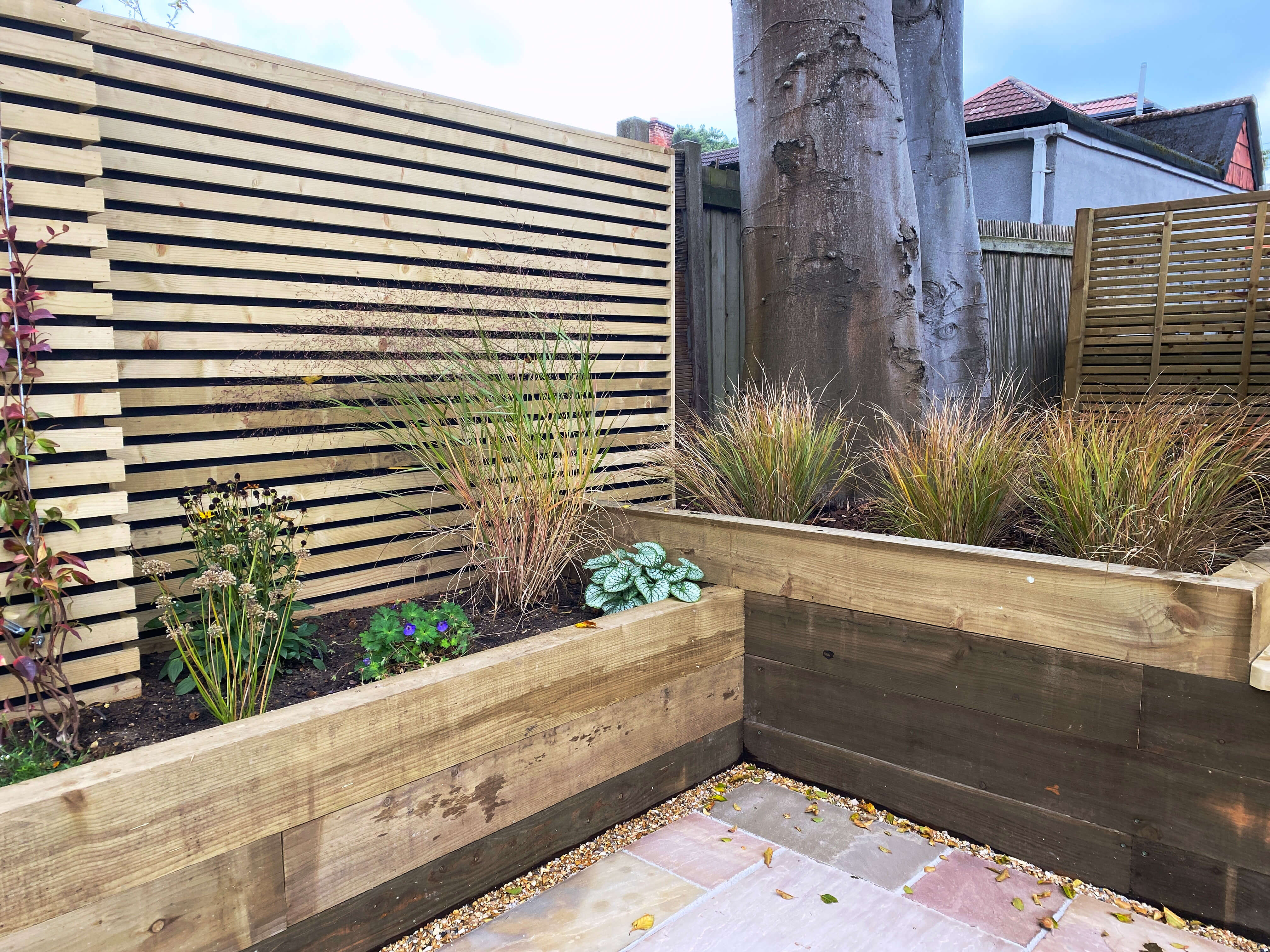 Construction and planting of raised beds using timber sleepers for a clean and functional finish.